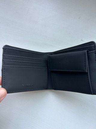 Cartera nieva sin estrenar. Con varios departamentos, tanto como para billetes, monedas y tarjetas. Ademas tiene una correa para poder llevarla colgada.