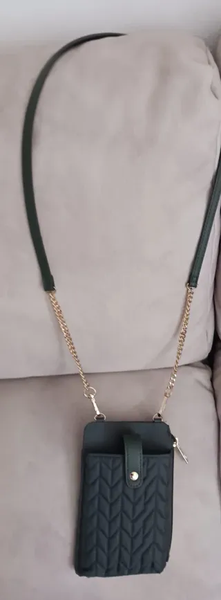 Bolsito cartera con apartado para el móvil. Medidas: 20 de largo 11 de ancho 17x1.5 para el móvil. Usado una vez.