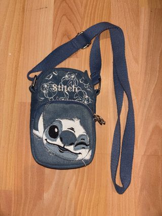 Bolso pequeño con diseño de Stitch, perfecto para llevar la cartera o el móvil. - Personaje: Stitch de Disney. - Material: Tela vaquera.