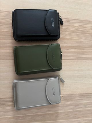 Cartera con correa para colgar, ideal para viajes. Compartimento para documentación, tarjetas, efectivo y móvil. Las vendo porque hice el pedido doble y no las pude devolver, no las he estrenado, van con embalaje original. Se venden por separado, cada una 15 euros. Si quieres las tres, 40 euros. Colores: verde militar, gris taupe y negra.