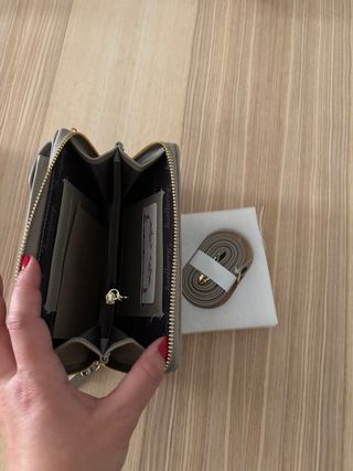 Cartera a estrenar con compartimentos para movil, dinerl y tarjetas y con cuerda para llevar colgada