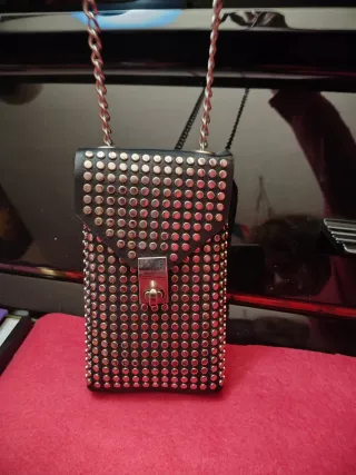 Bolso para móvil o cartera lleva correa para colgar. Muy practico Color negro con botones planos metálicos muy original. Sin uso alguno