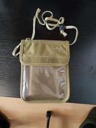 Porta pasaporte de la marca Tasmanian Tiger, ideal para llevar tus documentos de viaje de forma organizada. Su diseño práctico y resistente lo hace perfecto para cualquier aventura. - Compartimento principal con cierre. - Ventana transparente para identificación. - Correa ajustable para colgar al cuello.