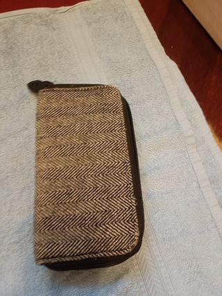 Tiene un espacio para guardar monedas con cremallera y para los billetes tambien con cremallera