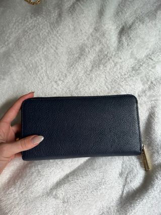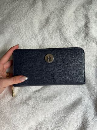 Cartera Tommy Hilfiger Honey Large azul marino. De mujer. Con su caja original. Mide 19cmx9,5cm. Elegante y práctica con sitio para monedas, billetes y tarjetas. Está usada, tal cual se ve en las fotos. Por dentro está perfecta. De cuero sintético.