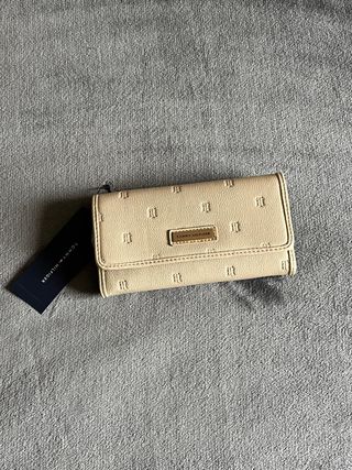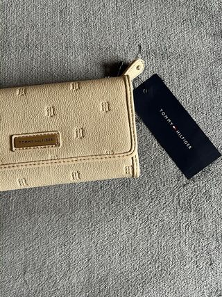 Cartera Tommy Hilfiger color beige. Monedero, billetera y tarjetero. Cierre con cremallera Detalle metálico TH Estampado liso Un solo uso. Como nueva.