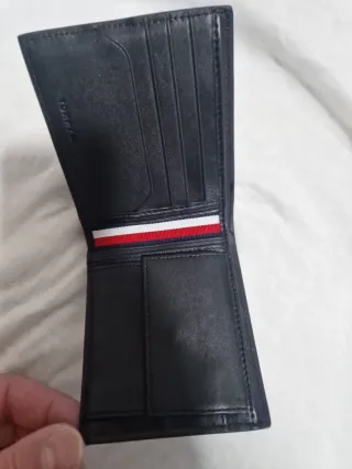 Elegante cartera de la marca Tommy Hilfiger. - Diseño clásico y funcional. - Acabado texturizado. - Detalle de franjas tricolor en la solapa. Cartera regalada por reyes a estrenar, me compraron dos carteras 😑 Está es el precio online la pongo bastante más barata ya que vale 50€ en zalando
