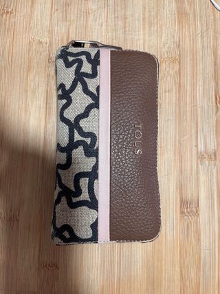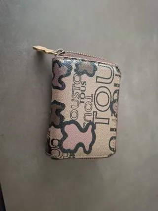 Cartera monedero de la marca TOUS. - Diseño con el logo de la marca. - Combinación de texturas y colores.
