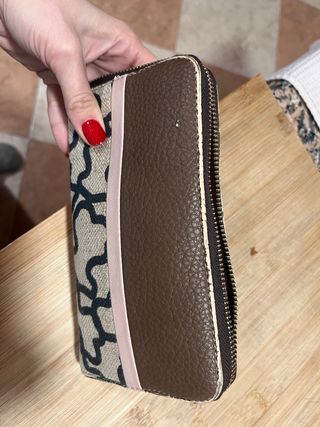 Elegante cartera Tous con un diseño bicolor. - Exterior en tono marrón y detalles en rosa. - Estampado distintivo de la marca en la parte frontal. ORIGINAL y prácticamente nueva sin uso !