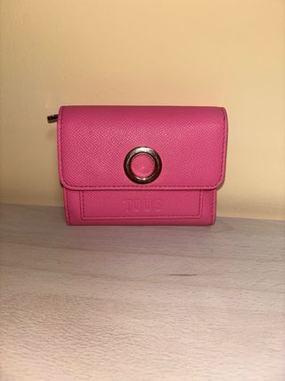 Cartera de la marca Tous en color rosa. - Diseño elegante y moderno. - Cierre de cremallera. - Pequeño logo metálico en la parte frontal.