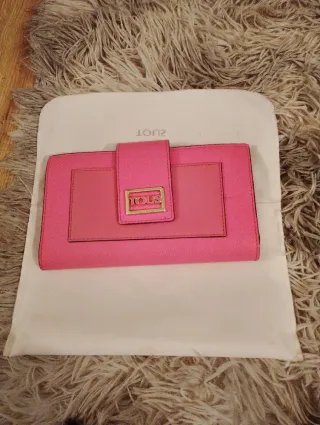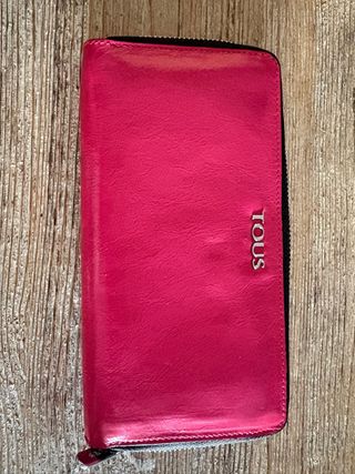 Cartera original de piel de la marca Tous. - Color rosa vibrante. - Diseño compacto y elegante. - Cierre de cremallera. Tiene signos de uso por eso está tan rebajado.