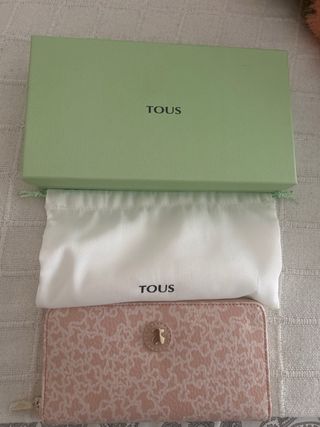 Preciosa cartera Tous en color rosa. Está impecable, sin señales de uso. - Diseño elegante y compacto. - Cremallera alrededor de todo el contorno. - Compartimento principal amplio. - Incluye varios compartimentos interiores para tarjetas y billetes.