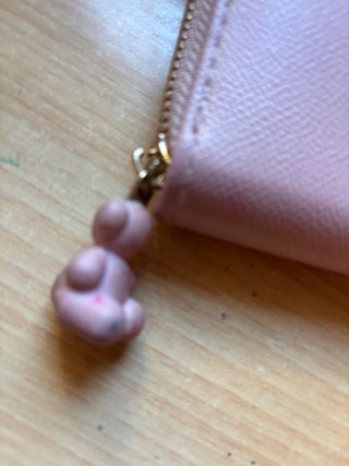 Cartera de la marca Tous en color rosa, con un adorable charm de oso. original - Diseño compacto y práctico. - Cierre de cremallera. - Detalle de logo en relieve.