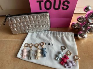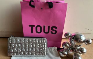 Preciosa cartera Tous de piel en color plata, con osos en relieve Nueva y original con su funda guardapolvo Precio oferta cartera, 75 € Precio pack de 4 Charms de ositos en diferentes colores: rosa, gris, beige y azul 25€ Precio de Cada osito por separado : 8 € Resto de colores vendido Todo es nuevo y original