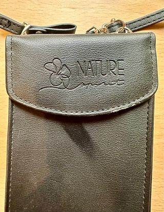Práctico bolsito tipo cartera para llevar tu móvil y tarjetas. Tiene un diseño elegante y es fácil de colgar. - Correa ajustable. - Cierre de cremallera. - Compartimento frontal con solapa.