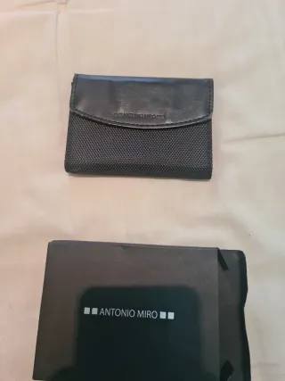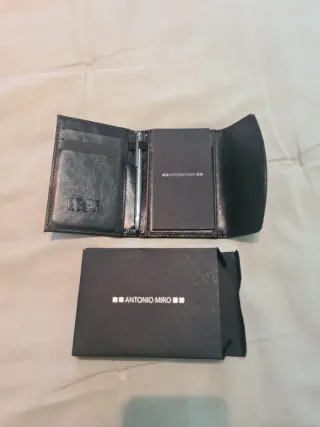 Cartera de la marca Antonio Miró, con inscripción de la RFEF. - Diseño elegante en color negro. - Compartimentos interiores para tarjetas. Bolígrafo y libreta.
