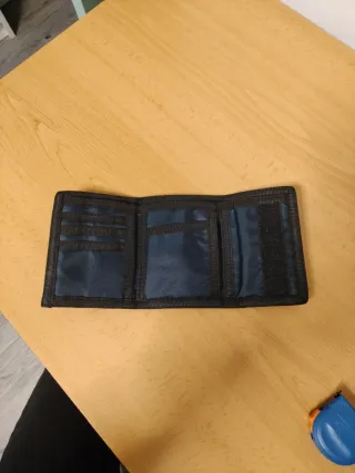 Cartera original Fila, diseño urbano con detalles en negro, azul y rojo. Logo bordado en el frontal. Material resistente, ideal para uso diario. Compartimentos para billetes, monedas y tarjetas. Usada pero en buen estado, sin roturas ni manchas. Perfecta para quienes buscan funcionalidad con estilo deportivo. Entrega en mano en Alcorcón o envío.