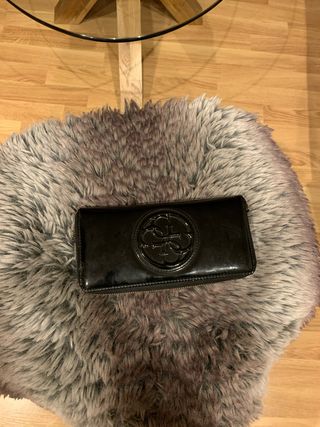 Elegante cartera con un diseño moderno y sofisticado. - Acabado brillante con textura de cocodrilo. - Cierre de cremallera. - Detalle metálico con el logo de la marca.
