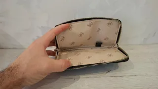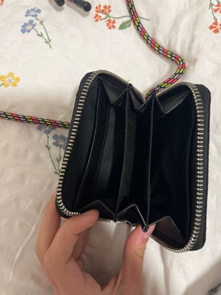 Cartera con un diseño elegante. - Cremalleras doradas. - Dos compartimientos para guardar tus tarjetas, billetes y monedas.