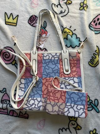 Pequeña cartera de la marca Tous con un diseño moderno y llamativo. - Cuerda de transporte con diseño de rayas multicolor. - Cierre de cremallera. - Detalle de logo en la parte frontal.