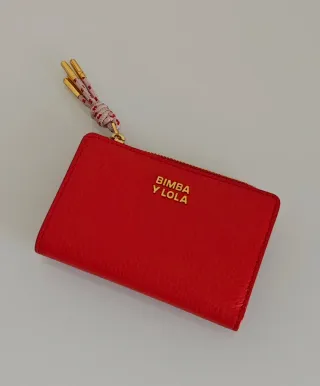 Pequeña cartera de la marca BIMBA Y LOLA en color rojo. - Detalle de cuerda con adornos dorados. - Cierre de cremallera.