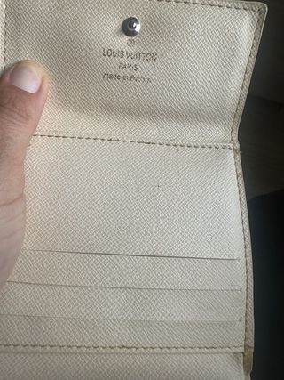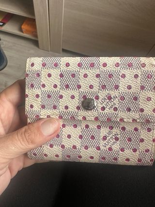 Cartera original de Louis Vuitton con un diseño distintivo. - Patrón a cuadros con lunares. - Cierre de botón a presión. - Logo de Louis Vuitton Paris. Con numero de verificación