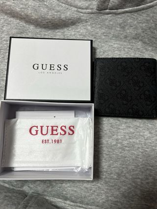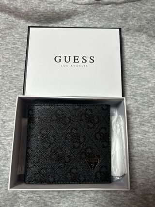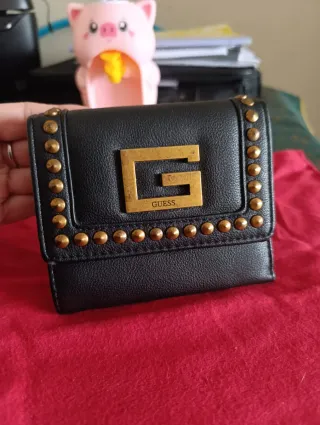 Elegante cartera Guess con un diseño moderno y detalles que marcan la diferencia.Autentica ,en perfecto estado,múltiples compartimentos. - Acabado en piel sintética negra. - Adornos metálicos dorados en la solapa. - Logo metálico dorado de Guess. - Cierre de botón a presión.
