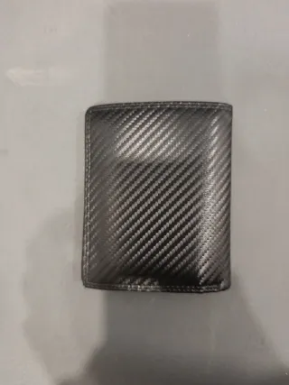 Cartera de hombre con un diseño moderno y elegante. - Material con textura de fibra de carbono. - Detalle de logo metálico en la parte frontal.