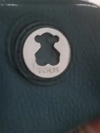 Cartera monedero de la marca Tous. - Diseño con el icónico osito. - Acabado en piel. - Color verde azulado.