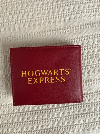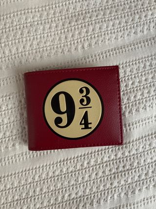 Cartera con el icónico diseño de la plataforma 9 y 3/4 de Harry Potter. - Diseño frontal con el número 9 3/4. - Color rojo vibrante. - Detalles en dorado.