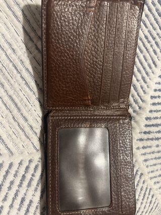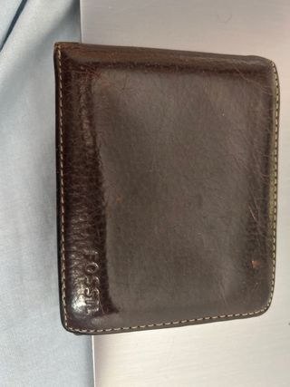 Cartera de cuero de la marca Fossil. - Diseño clásico y elegante. - Acabado en cuero de alta calidad. - Color marrón oscuro.