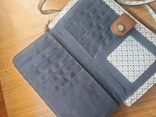 Cartera señora, con monedero y tarjetero, mide como una mano. Usada 2 o 3 veces, prácticamente nueva. No se la marca.