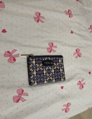 Cartera Tous con un diseño estampado. - Cierre de cremallera. - Logo de la marca visible.