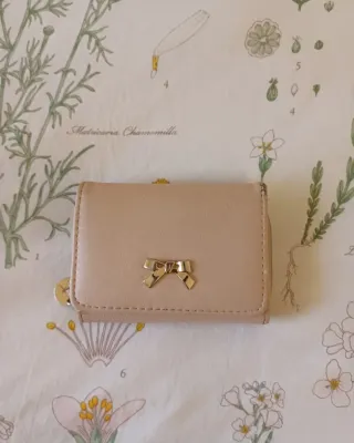 Cartera beige con lazo dorado