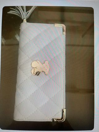Cartera blanca con un diseño acolchado y un bonito detalle de oso. - Acolchado en forma de rombos. - Detalle metálico de oso. - Esquinas reforzadas con metal. - Adorno de flecos en la parte superior.