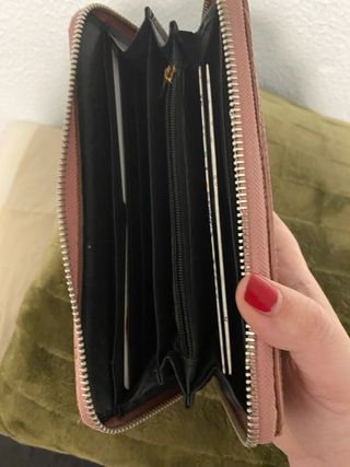 Cartera de mujer de la marca Parfois en color rosa. - Diseño con cremallera. - Compartimentos para tarjetas.