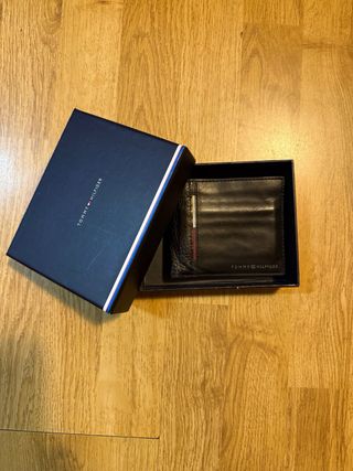 Cartera de la marca Tommy Hilfiger. - Diseño elegante en color negro con detalles en azul. - Acabado de calidad. - 100% cuero genuino. Se vende por no usar, totalmente nueva. NEGOCIABLE