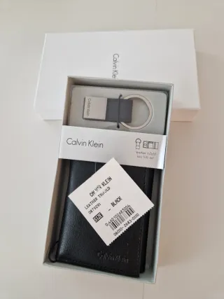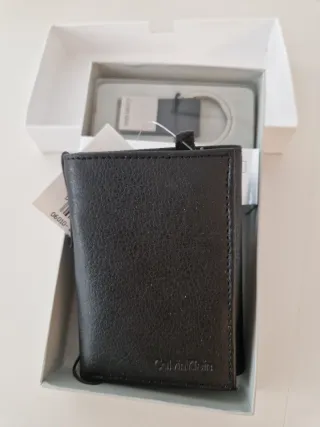 Elegante cartera de la marca Calvin Klein. - Diseño clásico y atemporal. - Material de alta calidad con textura. - Logo discreto de la marca grabado. - Llavero a juego como complemento incluido.