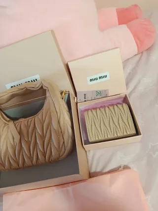 Bolso y cartera beige