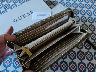 Elegante cartera Guess con un diseño acolchado. - Material: Piel. - Cierre de cremallera. - Incluye etiqueta de autenticidad.