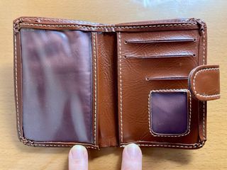 Cartera pequeña marrón. Con un bolsillo para los billetes, 4 bolsillos-ranuras para las tarjetas (1 transparente, 1 lateral y 2 frontales) y 1 para fotos tipo carné. Cierre de botón a presión. Medidas: 10cm largo x 7cm ancho aproximadamente. Marca: Ridal Moda. Nueva, nunca se ha llegado a usar, pero por el paso del tiempo, presenta pequeñas zonas como de desgaste del brillo, como manchas pero no lo son. Alguna pregunta, no dudes en contactar. Más artículos relacionados con la ropa-complementos y otros variados en mi perfil.