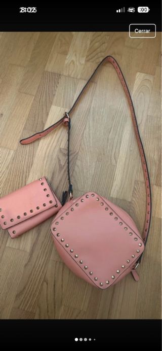 Conjunto de bolso y cartera a juego con un diseño moderno CARTERA DE REGALO DEBIDO A SU ESTADO . - Bolso con adornos de tachuelas. - Cartera a juego con tachuelas.