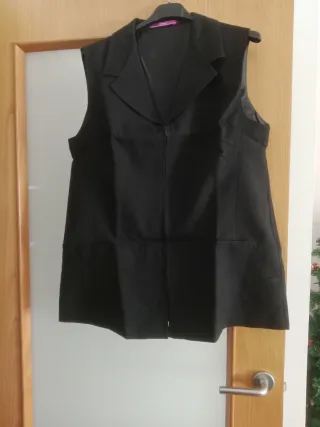 -2 Casacas sin mangas,y 1 con manga corta, para mujer. -Antimanchas. -Peluqueria,hostelería,etc... -Tallan pequeño,son T 48,pero están entre la 44 y la 46. -50€ las 3 unidades,unidad suelta a 20€. -Medidas aprox:Casaca manga corta:largo 70cm,pecho 58cm,cintura 55cm,cadera 60cm.Casaca sin mangas,tipo chaleco,largo 75cm,pecho 55cm,cintura 55cm,cadera 60cm. - Diseño tipo blazer. - Cierre de cremallera frontal. - Dos bolsillos laterales.
