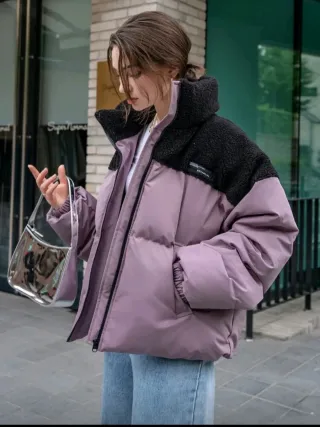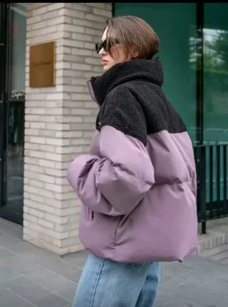 Casaca acolchada invierno morada y negra