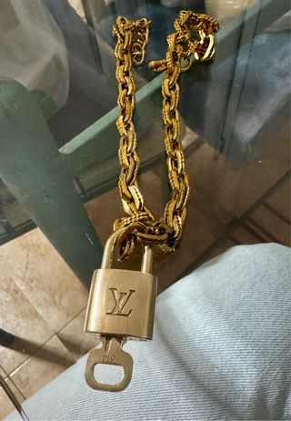 Candado original Louis Vuitton con su llave, en una cadena de acero inoxidable sin marca