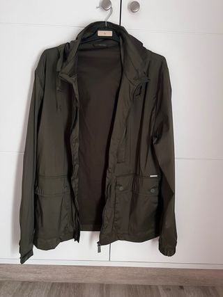 Chaqueta Cortefiel en color verde. Diseño moderno y funcional. - Cierre de cremallera. - Bolsillos frontales con solapa y botón. - Capucha integrada. - Detalle metálico en el bolsillo.