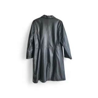 🖤 Abrigo cuero vintage años 80 – Piel ovina 100% – Fabricado en España – Talla Grande original marca Berges Piel.hombros 44 cm sisa a sisa 52 cm pero tiene costuras para el pecho, largo 94 cm Fabricado en España. Confeccionado en piel ovina 100%, tacto suave, flexible y con caída elegante. Forro interior acolchado en rayón, ideal para invierno. Color negro clásico, corte recto con ligera forma en la parte inferior que estiliza la silueta. Botonadura frontal y bolsillos laterales integrados. Es una pieza con carácter, calidad antigua y estructura impecable. La piel está cuidada y mantiene brillo natural. Perfecto para estilo minim