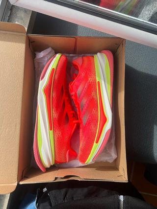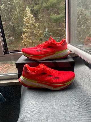 Zapatillas de running Adidas Supernova Prima. -Talla 49,5 - Color principal rojo vibrante con detalles en verde lima. - Incluye la caja original.