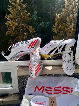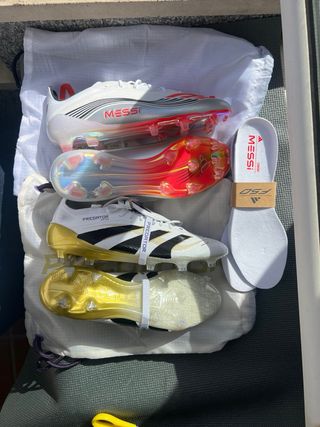 Pack de botas de fútbol Adidas. - Modelo Elite. - Color plateado y blanco. - Talla 43.5. -F50 edición limitada leo messi - Predator elite doradas y blancas -Gama alta elite .1 + AG FG SG Crazy fast, copa mundial, copa PureIII