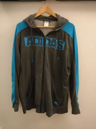 Sudadera con capucha y cremallera completa. - Diseño con paneles laterales en color azul. - Logo de Adidas en el pecho. - Bolsillos frontales. - Cordones ajustables en la capucha.